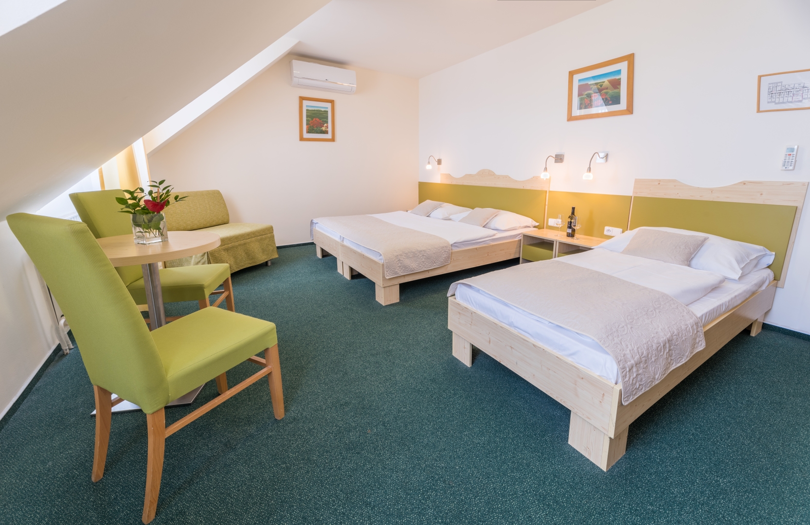Komfortní a útulný třílůžkový pokoj s koupelnou a toaletou, vybavený TV s plochou obrazovkou, klimatizací a Wi-Fi připojením Vám poskytne soukromí a klid pro rodinu s dětmi nebo skupinu přátel.